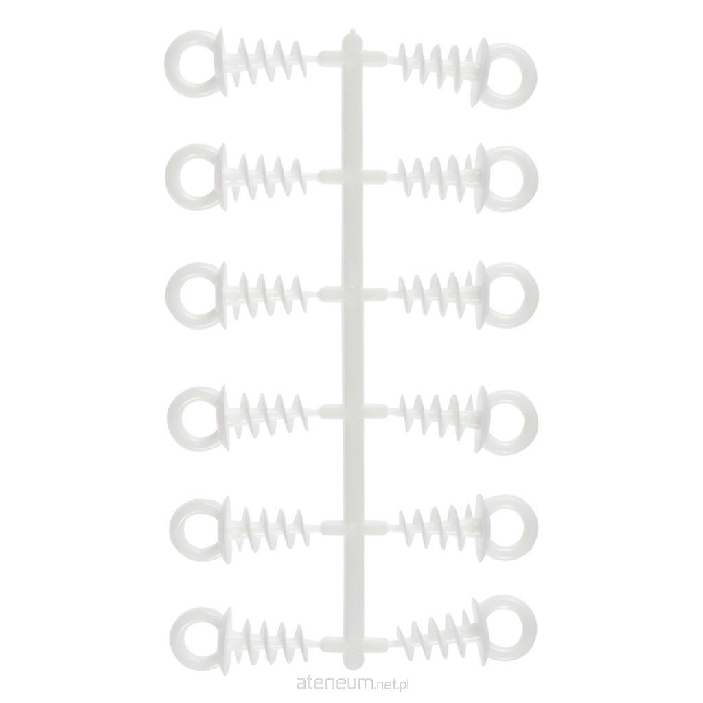 Plastikowe białe elementy do bombek styropianowych pakowane po 12 sztuk. Wymiar zawieszki 25 mm, średnica oczka 11 mm.