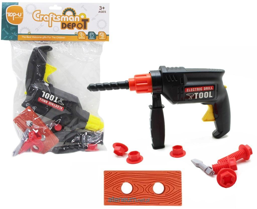 Zestaw małego majsterkowicza z wiertarką, śrubami oraz akcesoriami.