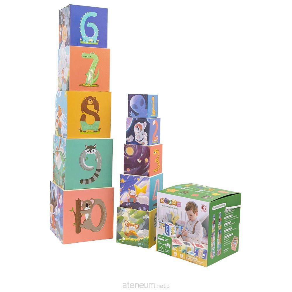 Wieża składa się z 10 kartonowych sześcianów, które należy ułożyć od największego do najmniejszego.