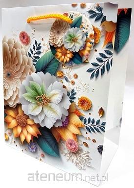 Torebka ozdobna matowa 18 x 23 x 10 cm białe kwiaty GB23130.