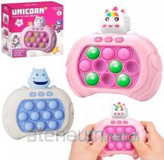 Gra Zabawka Zręcznościowa Dinozaury Ringi 360* Centralnym elementem zabawki jest karuzela, na której umieszczone są dinozaury. Karuzela może obracać się o pełne 360 stopni, co tworzy dynamiczne środowisko zabawy. Zawiera pięć kolorowych dinozaurów - żółty, niebieski, zielony, czerwony i brązowy Podczas obracania karuzeli dinozaurów wokół siebie, zabawka emituje melodyjną muzykę, co dodaje do zabawy elementu dźwiękowego i rytmicznego. W zestawie dołączone jest pięć kółeczek. Zadaniem dziecka jest próbować trafić środkiem każdego kółeczka na wybrane dinozaury kręcące się na karuzeli. To wymaga precyzji i zdolności do koordynacji ruchowej. Gra ta pomaga rozwijać zdolności motoryczne i koordynację ruchową dzieci, ponieważ muszą precyzyjnie celować i rzucać kółeczka w odpowiednim momencie. Kolorowe dinozaury i jaskrawe, pomarańczowe kółeczka przyciągają uwagę dzieci i dodają elementu wizualnego zainteresowania. Zabawka ta jest doskonałą propozycją dla dzieci, które lubią wyzwania zręcznościowe i uwielbiają dinozaury. Dzięki kombinacji kolorów, muzyki i ruchu zapewnia zarówno rozrywkę, jak i edukację poprzez rozwijanie umiejętności motorycznych i koordynacji. Zawartość zestawu : - 5 dinozaurów - karuzela -4 stopki do zamontowania dinozaurów - oryginalne opakowanie Wymiary karuzeli : 42 cm x 42 cm x 18 cm Wymiary opakowania : 41 cm x 36 cm x 7 cm Karuzela zasilana jest czterema bateriami 1.5V AA, które nie są elementem zestawu. Posiada certyfikat CE, ponadto jest zgodny z normą EN71. Zabawka przeznaczona jest dla dzieci powyżej 3 roku życia.