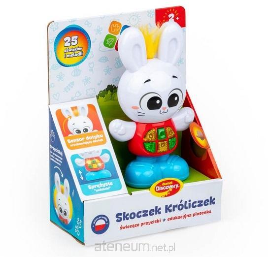 Wesoły, rozgadany króliczek wie jak zainteresować najmłodszych! Zna aż 25 różnych dźwięków i melodii, w tym nawet edukacyjną piosenkę. Poszczególne funkcje aktywują świecące przyciski, znajdujące się na króliczym brzuchu. Głowę zwierzaka zdobi żółta czuprynka z sensorem dotyku. Gdy dotkniemy jej, aktywujemy zabawne dźwięki. Króliczek posiada sprężyste nóżki, co umożliwia przyciśnięcie go, której to czynności towarzyszy odgłos sprężynowych podskoków.