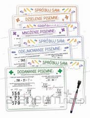 Karty pracy obejmują podstawowe zadania, które uczeń danej klasy powinien rozwiązywać, aby móc nabyć odpowiednie do danego poziomu umiejętności. Są one ułożone działami (np. liczby naturalne, ułamki dziesiętne, ułamki zwykłe, geometria itp.), co umożliwia ich stosowanie do dowolnie realizowanego przez nauczyciela programu nauczania. Można je stosować niekoniecznie w takiej kolejności, jak zostały ułożone. Aby zachęcić ucznia do rozwiązywania zadań, muszą one być powiązane z odpowiednio opracowanym systemem motywacyjnym. Każdy nauczyciel może opracować sobie system motywacyjny sam, zgodnie ze szkolnym i przedmiotowym systemem oceniania w szkole..