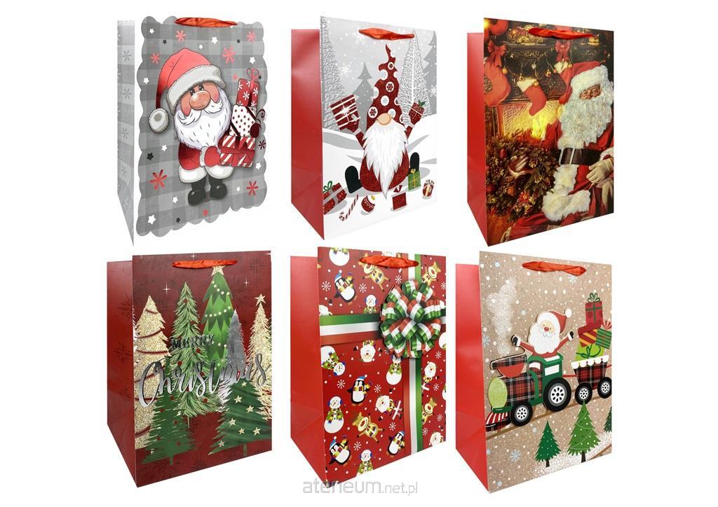 Torebka prezentowa ze świąteczną grafiką. Gramatura papieru 210, torebka laminowana folią mat z dodatkowym uszlachetnieniem (typu brokat/złocenie/srebrzenie/efekt 3D). Wielkość: 300x415x200 mm (L-20) Szerokie dno - 20 cm