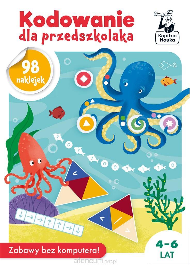 Kodowanie dla przedszkolaka (4-6 lat) to bogato ilustrowana książka wprowadzająca młodsze dzieci w podstawy programowania bez użycia komputera. Zawiera mnóstwo łamigłówek obrazkowych, m.in. zabawy z rytmami i sekwencjami, proste ćwiczenia na kratownicy przygotowujące do kodowania na macie, a także ćwiczenia na odgadywanie szyfrów, wyznaczanie tras i pisanie prostego kodu.