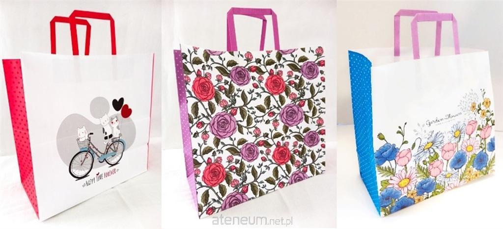 Torebka biała KRAFT 320x300x150 mix wzorów, wzór wysyłany losowo. Wymiary torebki: wysokość 300 mm, szerokość 320 mm, głębokość 150 mm.
