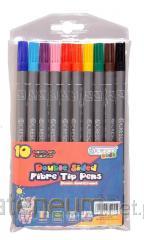 Flamastry dwustronne Faber-Castell 10 pastelowych kolorów w opakowaniu kartonowym. Doskonałe do szkoły i zabawy w domu. Zachwycają intensywnymi i żywymi kolorami. Posiadają dwie końcówki: szeroką do szybkiego zamalowania większych powierzchni i cienką pozwalającą dokładnie wykończyć detale i kontury. Dla nieograniczonej kreatywności i wielu technik kolorowania. Z tuszem na bazie wody i barwników naturalnych. Spieralne z większości standardowych tkanin. Skuwka z wentylacją.