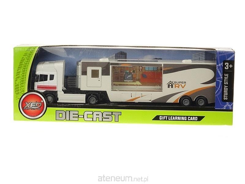 auto ciężarowe, metalowe, z kontenerem mieszkalnym.
