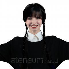Peruka wykonana z włosów syntetycznych w kolorze czarnym. Długa fryzura z grzywką. Dopełnienie stylizacji, przebrania na bal karnawałowy, sylwestrowy, halloween. Długość włosów to około 50 cm. Peruka w rozmiarze uniwersalnym.