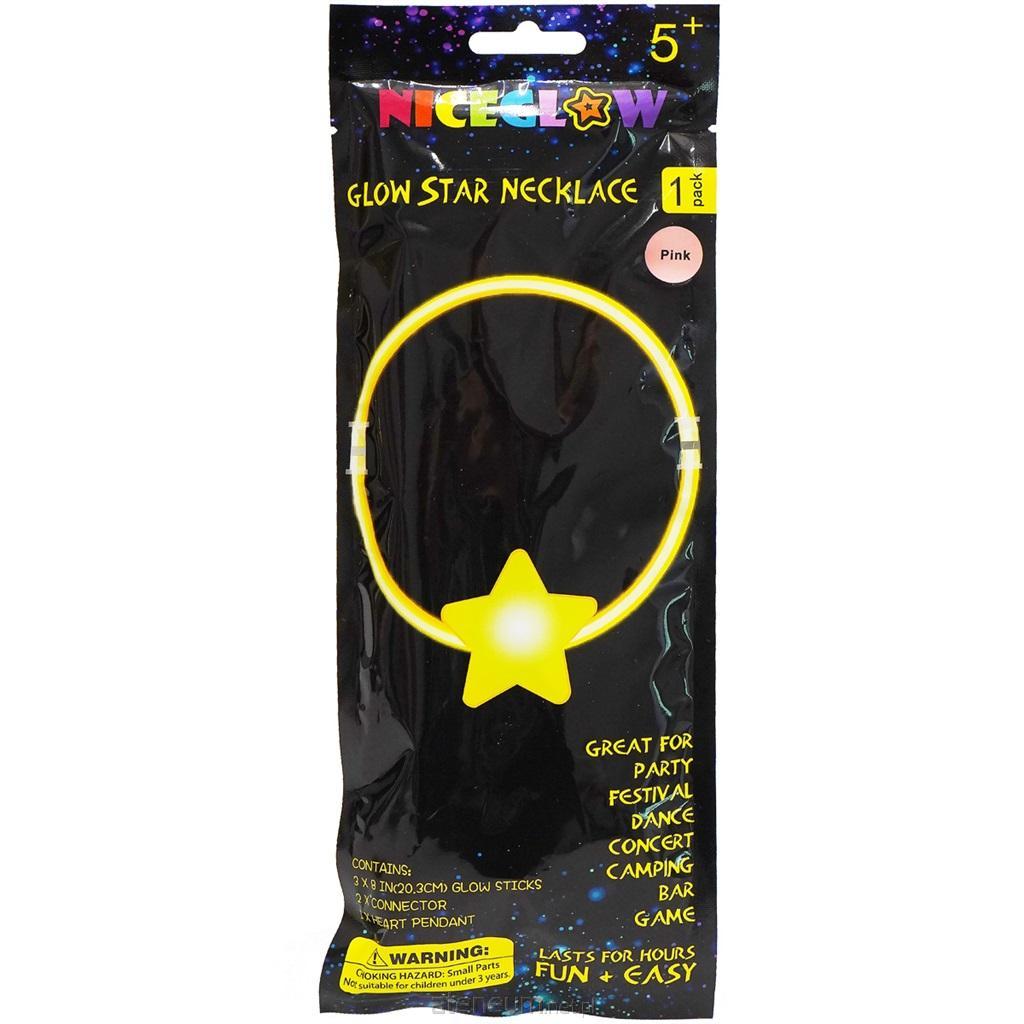 Świecący naszyjnik do samodzielnego złożenia. W skład zestawu wchodzą 3 pałeczki glow stick, elementy łączące i dekoracyjna gwiazdka. Po dokładnym przełamaniu w kilku miejscach pałeczka zacznie świecić neonowym światłem. Pałeczki są elastyczne, więc z łatwością można je wygiąć w odpowiedni kształt i zamknąć dołączonym łącznikiem. Idealny gadżet na imprezę lub festiwal. W opakowaniu znajduje się 1 sztuka.