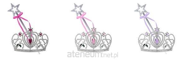 Zestaw księżniczki składający się z korony i różdżki z wstążeczką. Rozmiar korony: 13 x 10 cm. Rozmiar różdżki: 34cm. Dostępne kolory: jasnoróżowy, ciemnoróżowy, fioletowy