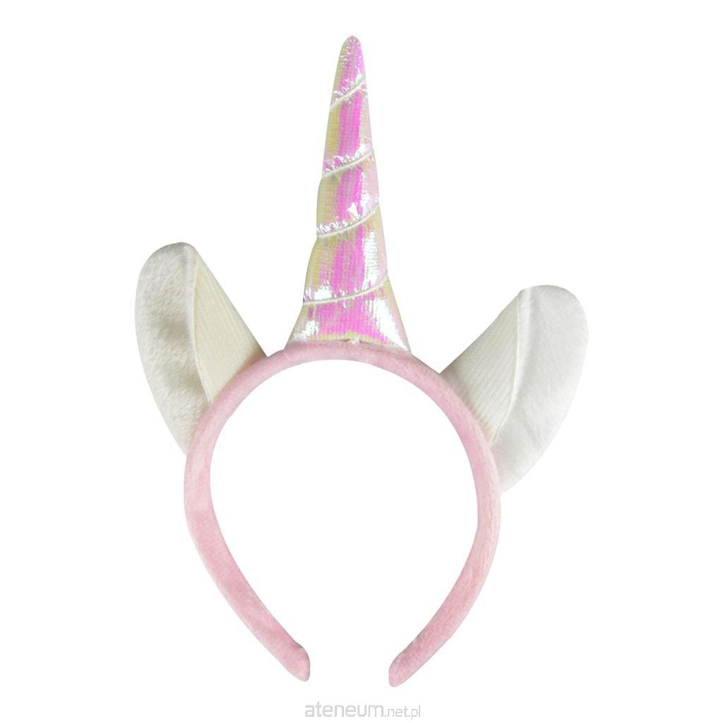 Opaska na głowę z opalizującym rogiem jednorożca i materiałowymi uszkami. Uroczy gadżet, ozdoba do włosów. Może być uzupełnieniem przebrania, kostiumu jednorożca na zabawę karnawałową, bal przebierańców lub samodzielną ozdobą. Rozmiar uniwersalny.