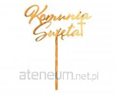Dekoracja akrylowa na tort Komunia złota 18x14cm