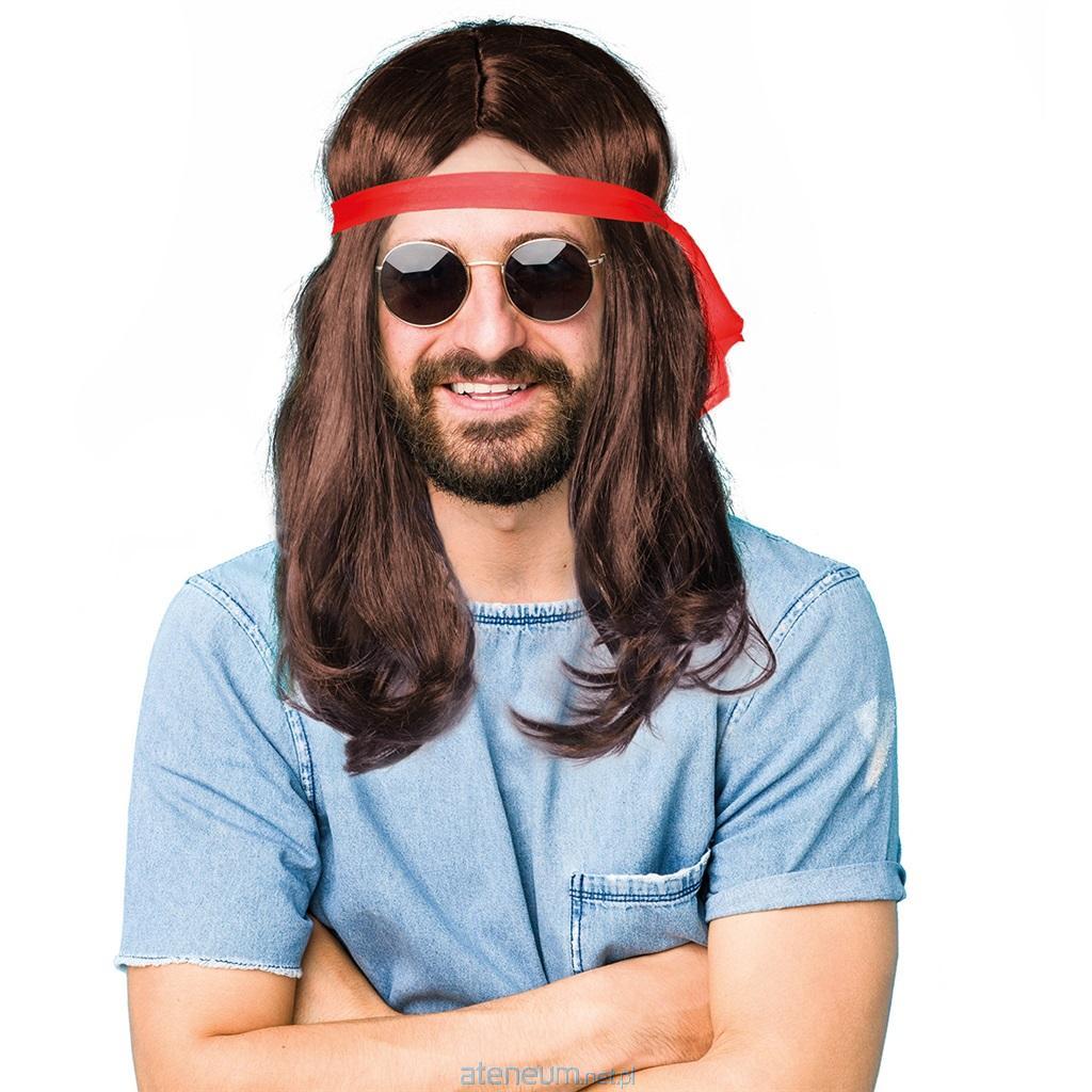 Peruka hipisa z włosów syntetycznych w kolorze brązowym. Do peruki dołączona jest przepaska w kolorze czerwonym. Gadżet do charakteryzacji na bal przebierańców, zabawę tematyczną.