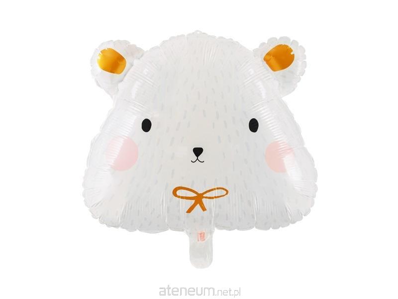 Matowy balon foliowy Miś polarny w białym kolorze z kolorowym i satynowym złotym nadrukiem, wymiary ok. 51 x 45 cm (20 x 18 '').