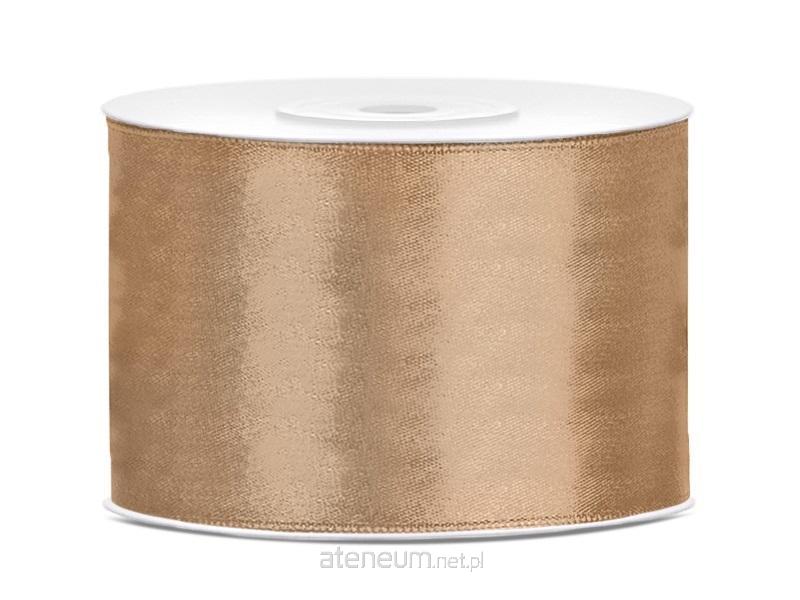 Tasiemka satynowa w kolorze jasnozłotym, szerokość 50 milimetrów, długość 25 metrów.