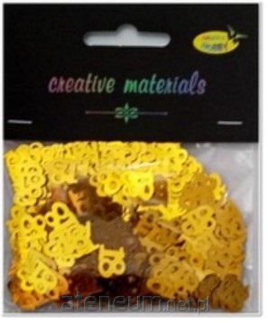 Elementy z folii Alu w kształcie liczby 18 w kolorze złotym . Pakowane w opakowania z eurozawieszką zawierające 15 gram elementów.