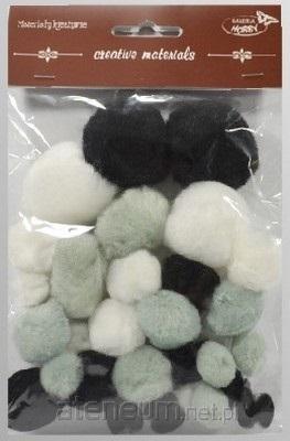 Pompony tonacyjne czarno białe 15-40mm 30szt