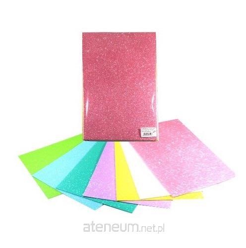 Mikroguma (pianka EVA) w kolorach opalizujących brokatowych w tonacji wiosennej. Opakowanie zawiera 8 arkuszy w formacie 20x30 cm w kolorach jak na zdjęciu.