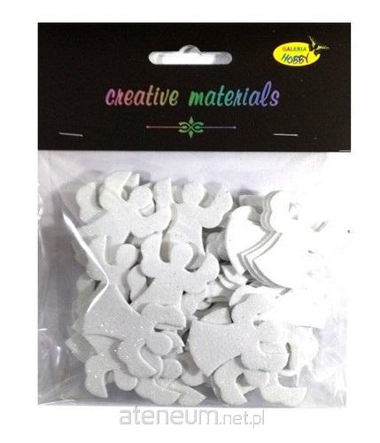 Zestaw elementów w formie aniołów z pianki brokatowej wielkości 40 mm , zawierający ok. 50 elementów, pakowany w eleganckie opakowanie z eurozawieszką. Elementy można naklejać na każdą powierzchnię lub używać do innych zdobień. Opakowanie zawiera elementy w kolorze białym.