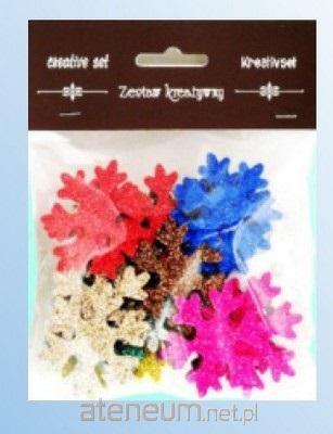 Zestaw elementów w formie śnieżynek z pianki brokatowej wielkości 50 mm , zawierający ok. 30 elementów, pakowany w eleganckie opakowanie z eurozawieszką. Elementy można naklejać na każdą powierzchnię lub używać do innych zdobień. Opakowanie zawiera miks kolorystyczny elementów.