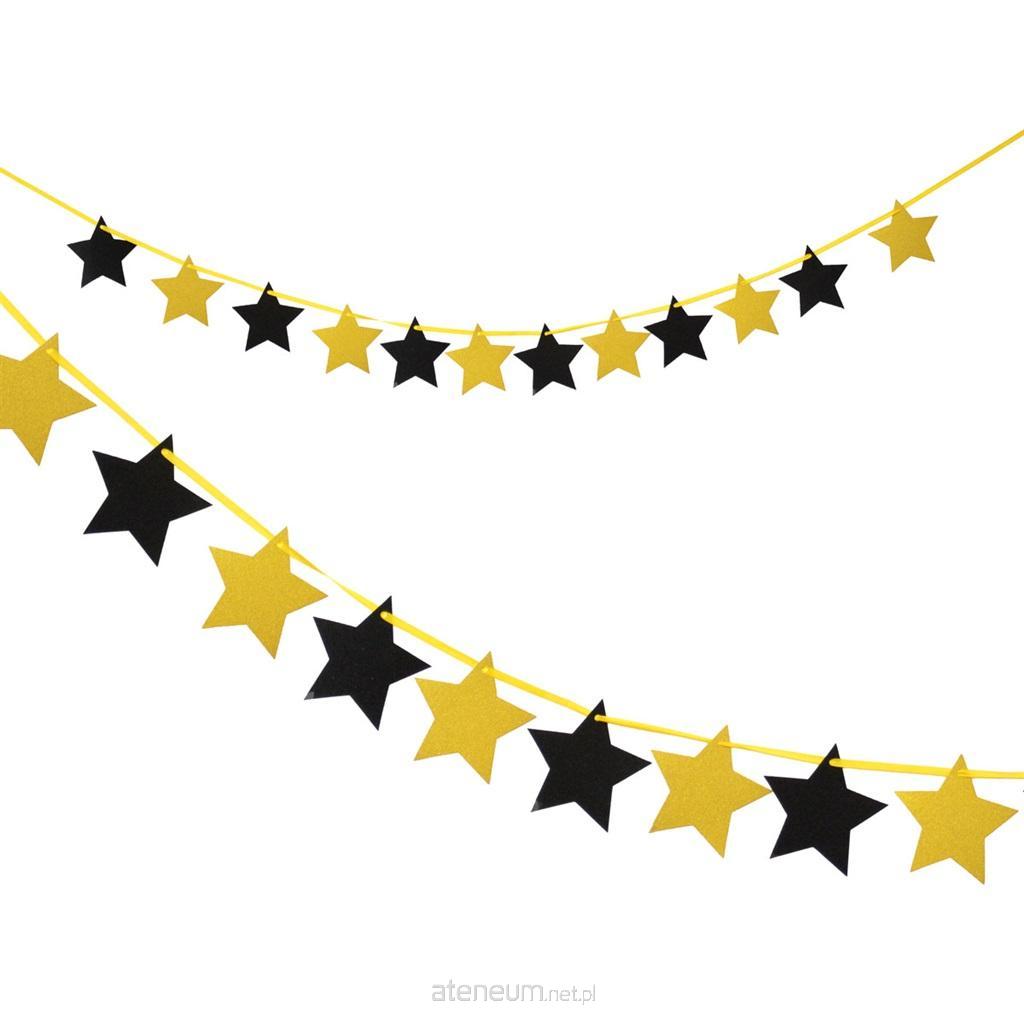 Papierowe gwiazdki złote i czarne na tasiemce do zawieszenia. Długość ozdoby 3 metry.