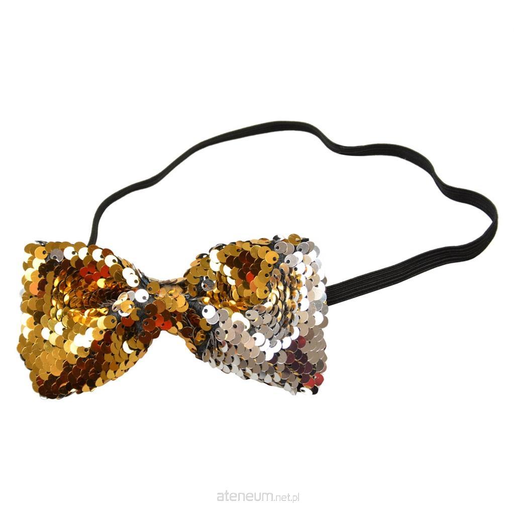 Muszka z cekinami dwustronnymi mocowana na elastycznej gumce. Przełam nudę - zmień kolory. Rozmiar: 11,5 x 6 cm Kolor: złoto-srebrny
