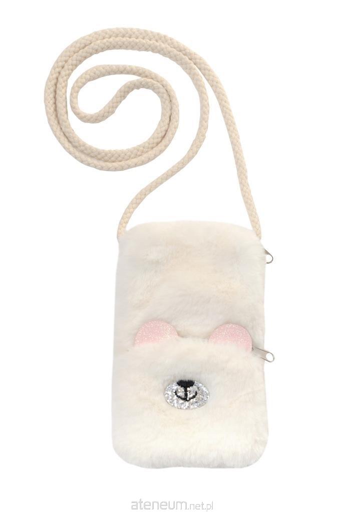 Torebka na telefon miś. Główna komora zamykana na zamek. Dodatkowa kieszonka na drobiazgi. Kolor kremowy.