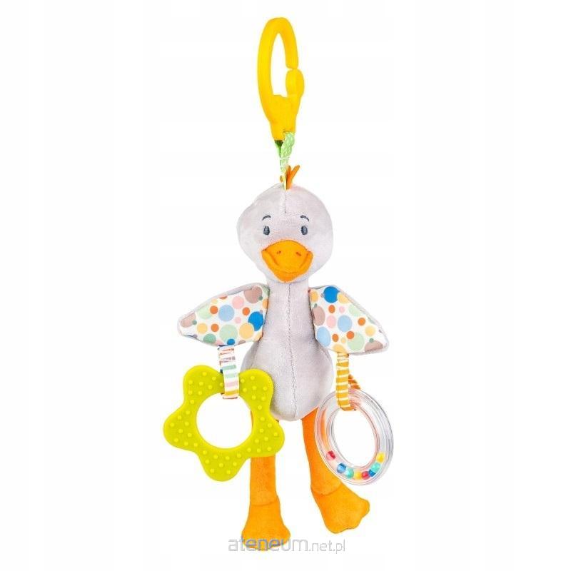 Kompaktowa zabaweczka, która świetnie sprawdzi się w każdej sytuacji, zapewniając bobasowi rozrywkę. Kaczuszka uszyta została z materiałów o zróżnicowanych fakturach, przez co stymuluje zmysł dotyku maluszka, wpływając korzystnie na rozwój jego zdolności poznawczych. Kacze skrzydełka zdobią dwie dodatkowe zabawki, gryzak z wypustkami oraz grzechoczące kółeczko, wypełnione kolorowymi kuleczkami. Praktyczny uchwyt umożliwia łatwe przymocowanie zabawki w dowolnym miejscu.