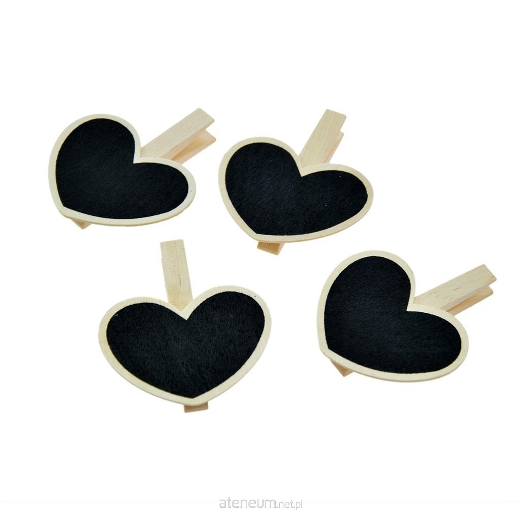 Serca - klamerki z tablicówką. 4 sztuki w opakowaniu. Wymiar pojedynczej klamerki 5.5x6.5cm.