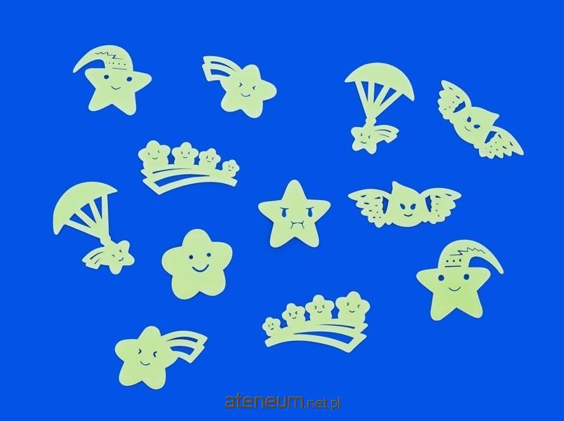 świecące naklejki do dekoracji, materiał sam absorbuje energię świetlną w ciągu dnia i dzięki temu może świecić w nocy, 12 szt.