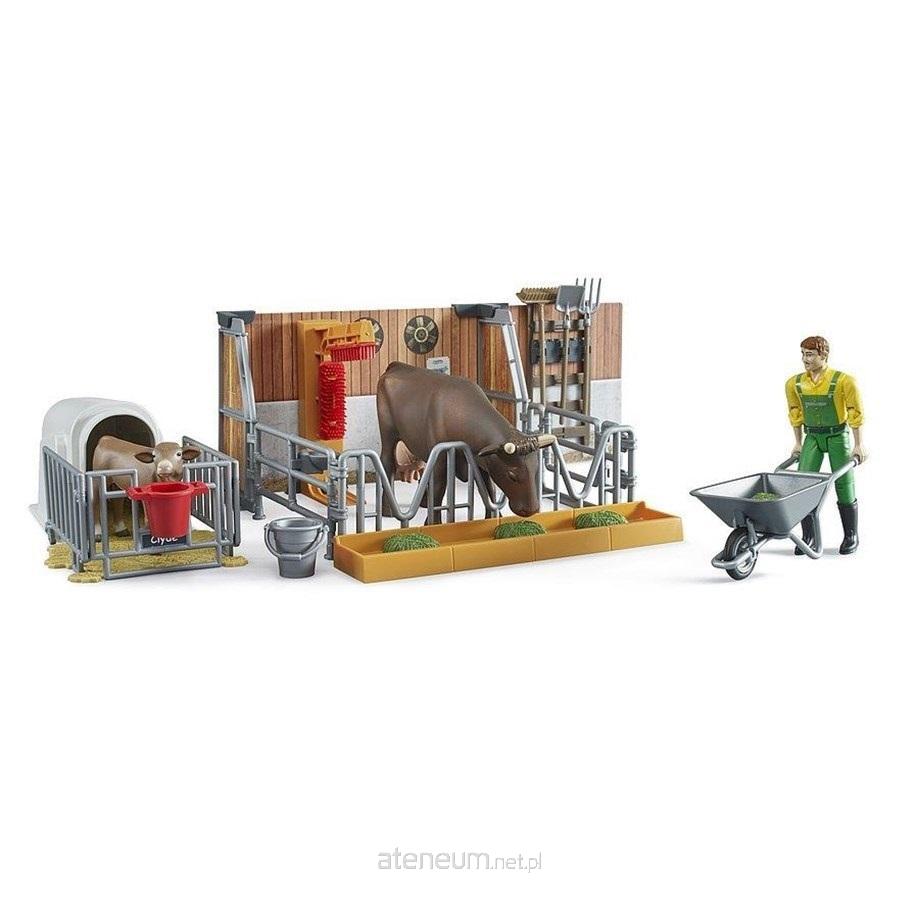 Nowa obora z figurką krowy, cielaka, rolnika i z innymi akcesoriami