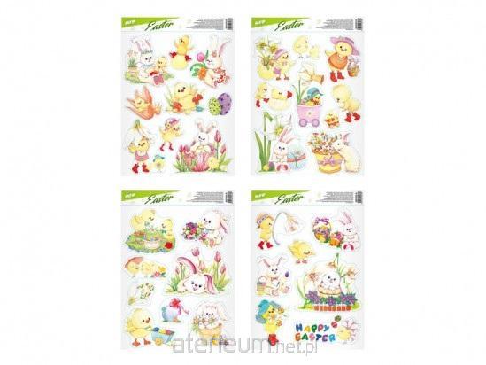 Folia statyczna na okno Wielkanoc. Stwórz świąteczną atmosferę w swoim domu. INSTRUKCJA: Obrazek odkleić od podłoża i umieścić na czystej, ewentualnie zwilżonej szybie stroną, która byłą przyczepiona do podłoża. Obrazek przylgnie elektrostatycznie. Obrazek można łatwo zdjąć i przenieść w inne miejsce. Dostarczane w miksach po 4 szt. Wymiar: 300mm x 420mm x 1mm (szer. x wys. x gł.)