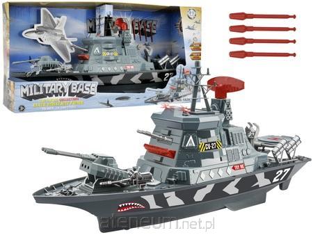 Wojskowy Statek Militarny Wojsko Światła Dźwięki Proponujemy statek wojskowy dla dzieci, które uwielbiają bawić się w wojskowych, ale tez i pasjonują się statkami. Zestaw rozwinie wyobraźnie, kreatywność i pozwoli młodym żołnierzom na tworzenie planów bitewnych. Statek posiada cztery przyciski, każdy uruchamia sygnalizacje dźwięków i różną kombinację efektów świetlnych. Po przyciśnięciu jednego z nich radar obraca się, świeci wraz z dźwiękiem. Słychać odgłosy morza, strzałów, alarmów oraz wypowiedź kapitana po angielsku. Musisz sam to sprawdzić, ciekawa zabawka przeniesie Cię w świat morskiej armii wojskowej. Na tyłach znajduje się lądowisko dla samolotu, na przodzie kotwica, aby zacumować przy porcie. Ruchome karabiny i działa bojowe na czubie statku sprawią, że zabawa będzie jeszcze bardziej realistyczna. Dodatkowo w zestawie znajdują się: - statek militarny - karabiny - działa do strzelania Wymiary statku: 57 cm x 16 cm x 27 cm Wymiary opakowania: 61 cm x 31 cm x 17 cm Prezentowany zestaw militarny zapakowany jest w ozdobny karton z witrynką i rączką umieszczoną w górnej części pudełka, co ułatwia przenoszenie zabawki. Samolot wraz z załogą przeznaczony jest dla wszystkich dzieciaków powyżej 3. roku życia. Zasilany trzema bateriami 1,5V AA, brak w zestawie. Zabawka posiada certyfikat CE, gwarantujące komfort i bezpieczeństwo płynące z jej użytkowania.