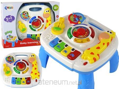 Edukacyjny Interaktywny Stolik Tablica 2w1 Dla Maluchów Żyrafa Pragniemy zaprezentować fascynujący stolik edukacyjny 2w1, stanowiący doskonałe narzędzie do wszechstronnego rozwoju malucha. Środkowym punktem tablicy jest ruchomy zegar, który nie tylko uczy dziecko rozpoznawania czasu, ale również rozwija zdolności motoryczne poprzez interakcję z ruchomą wskazówką. To nie tylko zabawka, ale także narzędzie wprowadzające dziecko w świat zegarów i pomiaru czasu. Stolik edukacyjny posiada także wiele innych elementów, które pobudzają zmysły i rozwijają zdolności poznawcze. Małe pianinko zachęca do eksploracji dźwięków, żółta żyrafa i gitara rozwijają zainteresowanie instrumentami muzycznymi, a malutka książeczka z przewracanymi stronami pomaga w poznawaniu zwierzątek. Nie tylko edukacyjny, ale także interaktywny! Wyposażony jest w efekty dźwiękowe i świetlne, które sprawiają, że nauka staje się atrakcyjna i angażująca dla malucha. Dzięki dołączonym nóżkom, tablica edukacyjna może pełnić funkcję tradycyjnego stolika, doskonałego do różnorodnych aktywności. Z kolei przymocowane uchwyty na tylnej stronie pozwalają łatwo zamocować tablicę na łóżeczku dziecka, umożliwiając naukę i zabawę nawet po przebudzeniu dziecka. Tablica zasilana jest na baterie 3x 1.5V AA, które nie są elementem zestawu. Wymiary stolika: 24,5cm x 22,5cm x 16cm Wymiary opakowania: 33,5cm x 26cm x 7,5cm Posiada certyfikat CE, ponadto jest zgodny z normą EN71. Przeznaczony dla dzieci powyżej 18 miesiąca życia.