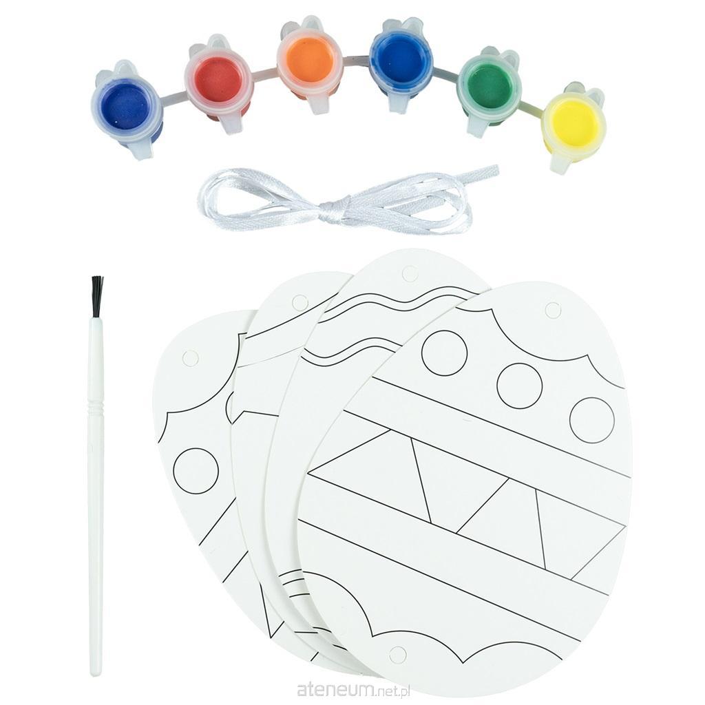 Zestaw do malowania w kształcie pisanek z różnymi wzorami do kolorowania. Do zestawu dołączony jest pędzelek oraz komplet farbek. Idealny do wspólnej zabawy z dziećmi. Angażujące zajęcie podczas dekorowania domu na święta wielkanocne. Arkusze do malowania o rozmiarze: 8 cm.