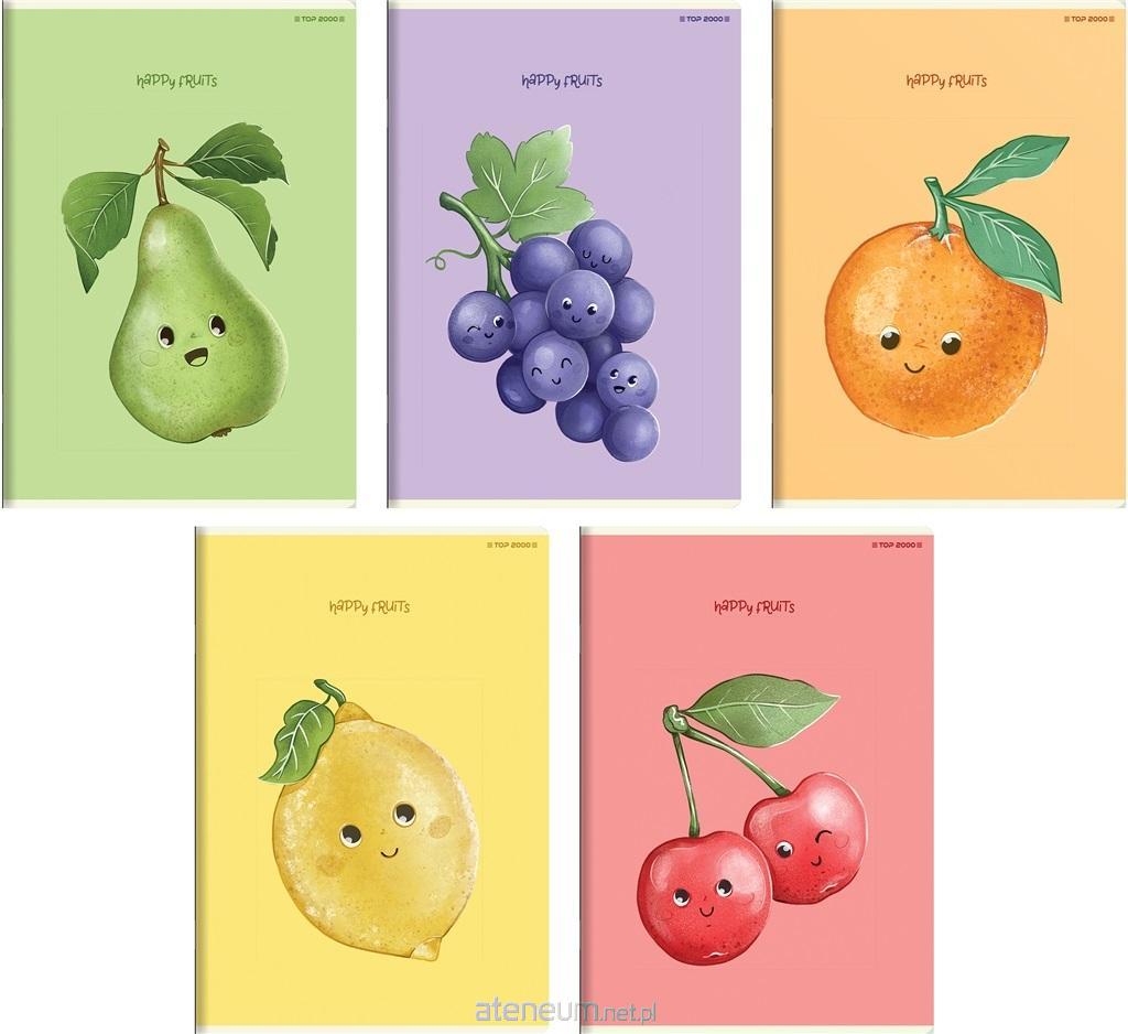 Poznaj kolekcję zeszytów Happy Fruits pięknie ozdobionych uroczymi, uśmiechniętymi owocami.