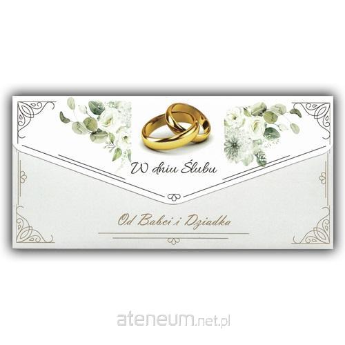 Po złożeniu format kartki DL, wyjątkowe złocenia, w środku życzenia i kieszonka na pieniądze. Dodatkowa koperta