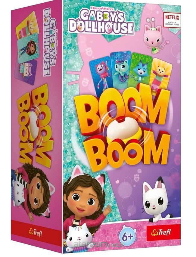 Odsłona gry Boom Boom, w której staracie się zebrać identyczne karty z ulubionymi bohaterami bajki Koci Domek Gabi. Wszyscy gracie jednocześnie, wymieniając karty z ręki z kartami na planszy. Po zebraniu zestawu 4 takich samych postaci uderzacie w dzwonek, sygnalizując wykonanie zadania. Może się okazać, że polujecie na karty tego samego typu kto okaże się szybszy? Gracz, który jako pierwszy zbierze wszystkie zestawy swoich kart, zostaje zwycięzcą!