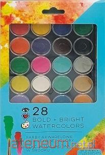 Odkryj nieograniczone możliwości zabawy kolorami i twórz własne, oryginalne obrazy. Wygodny, kompaktowy zestaw 28 farb akwarelowych w pięknych, żywych odcieniach każdemu użytkownikowi pozwoli wyrazić swoją kreatywność. Komplet zamknięty jest w plastikowym etui chroniącym farby przed wysychaniem i ułatwiającym ich codzienne użytkowanie Do zestawu dołączony został pędzelek oraz krótki przewodnik po technikach akwarelowych. Dzieki niemu każdy nauczy się łączyć kolory i tworzyć nowe odcienie. Jest to idealny prezent dla dzieci, przyjaciół, dla wszystkich lubiących malować.