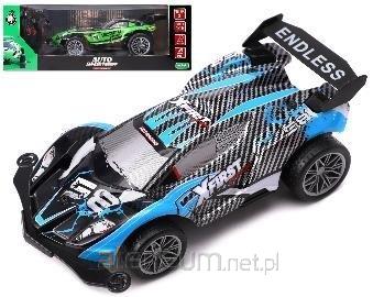 W zestawie: auto o dł. 25 cm., pilot. Funkcje: jeździ do przodu, skręca do tyłu, podświetlana karoseria, regulacja zbieżności kół. Pozostałe informacje: wym. opakowania: 35 x 16 x 12 cm., baterie: auto 4 x AA 1,5V, pilot 2 x AA1,5V brak w zestawie, 3+