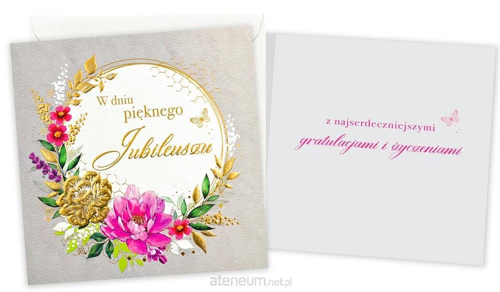 Kartka z serii Quadro to idealny pomysł na pamiątkę jubileuszu. Kartki wyróżniają się nowoczesnym designem przedstawionym w prostej formie. Środek każdej kartki posiada specjalnie dopasowane życzenia z miejscem na własną dedykację. Całość idealnie dopełnia koperta zaprojektowana z dbałością o każdy detal pasujący do kartki. Cechy szczególne: wielkość: 15.5 x 15.5 cm po złożeniu koperta: stylistycznie dopasowana do kartki zdobienia: połyskująca folia okazja: jubileusz