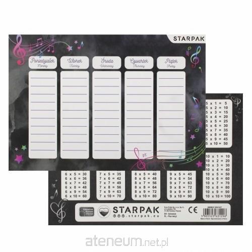 Plan lekcji jest niezbędnym elementem wyposażenia szkolnej wyprawki. Plan z kolekcji STARPAK Music zawiera podział na pięć dni tygodnia z 10 wierszami do wpisu, dzięki czemu żaden uczeń nie zapomni o potrzebnych mu danego dnia książkach czy zeszytach, dodatkowo na odwrotnej stronie posiada tabliczkę mnożenia. Przyjazna grafika sprawi, że każdy dzień w szkole będzie dobrze zaplanowany i udany. Zapoznaj się również z innymi produktami Starpak! Plan lekcji wykonany z papieru. Wyprodukowany w Polsce. Pakowany w folię po 25 sztuk. Wymiary produktu(szer. x wys.) [cm]: 23x16. Waga produktu w opakowaniu [kg]: 0,23 kg