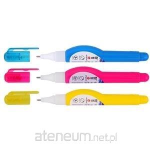 Korektor w pisaku MemoBe. Pojemność 3 ml. Posiada metalową, precyzyjną końcówkę do dokładnej aplikacji substancji korygującej. Korektor dostępny w mixie trzech neonowych kolorów obudowy. Pakowane w etui z zawieszką. Towar wysyłany losowo.