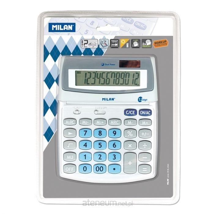 Kalkulator biurowy 12-pozycyjny z dużym ruchomym wyświetlaczem. 3 klawisze pamięci. Obliczanie marży. Podwójna pamięć. Klawisz cofania. Klawisz zmiany znaku +/-. Pierwiastek kwadratowy. Podwójne zasilanie: bateria 1,5V oraz bateria słoneczna. Metaliczne wykończenie. Kalkulatory spełniają wymagania dyrektywy RoHS o ograniczeniach stosowania niektórych substancji niebezpiecznych w urządzenia elektrycznych i elektronicznych. Pakowany na blistrze. Rozmiar kalkulatora: 20 x 16 x 3 cm.