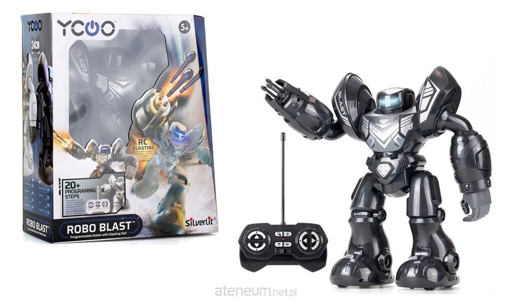 Gotowi na trening celności? Przedstawiamy Robo Blast zdalnie sterowanego robota, wyposażonego w miotacz pocisków oraz zestaw sześciu rzutek! Robot charakteryzuje się futurystycznym wyglądem i bogactwem funkcji. Chodzi w czterech kierunkach, tańczy, odtwarza muzykę i efekty dźwiękowe, strzela rzutkami, a także potrafi zapamiętać aż do dwudziestu poleceń i wykonać je w określonej sekwencji. Za aktywowanie poszczególnych funkcji odpowiada dołączony do zestawu pilot.