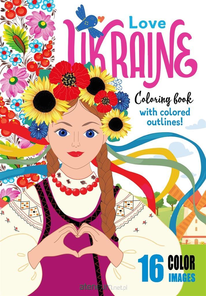 Kolorowanka dla dzieci z motywami ukraińskimi. W środku 16 obrazków, które czekają, aby nabrać kolorów. Wyprodukowana na Ukrainie.