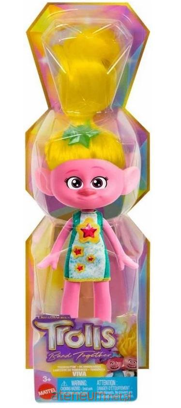 Lalki inspirowane popularnymi postaciami z 3 części filmu Trolle wytwórni DreamWorks pozwalają fanom wymyślać własne opowieści pełne zabawy. Lalka podstawowa Viva ma zdejmowane ubranko, a jaskrawożółte włosy i akcesorium do nich zachęcają do zabawy w stylizację. Zbierz wszystkie lalki, aby dać czadu z całym zespołem! Sprzedawane oddzielnie, zależnie od dostępności. Lalka nie stoi samodzielnie. Kolory i elementy dekoracyjne mogą się różnić.