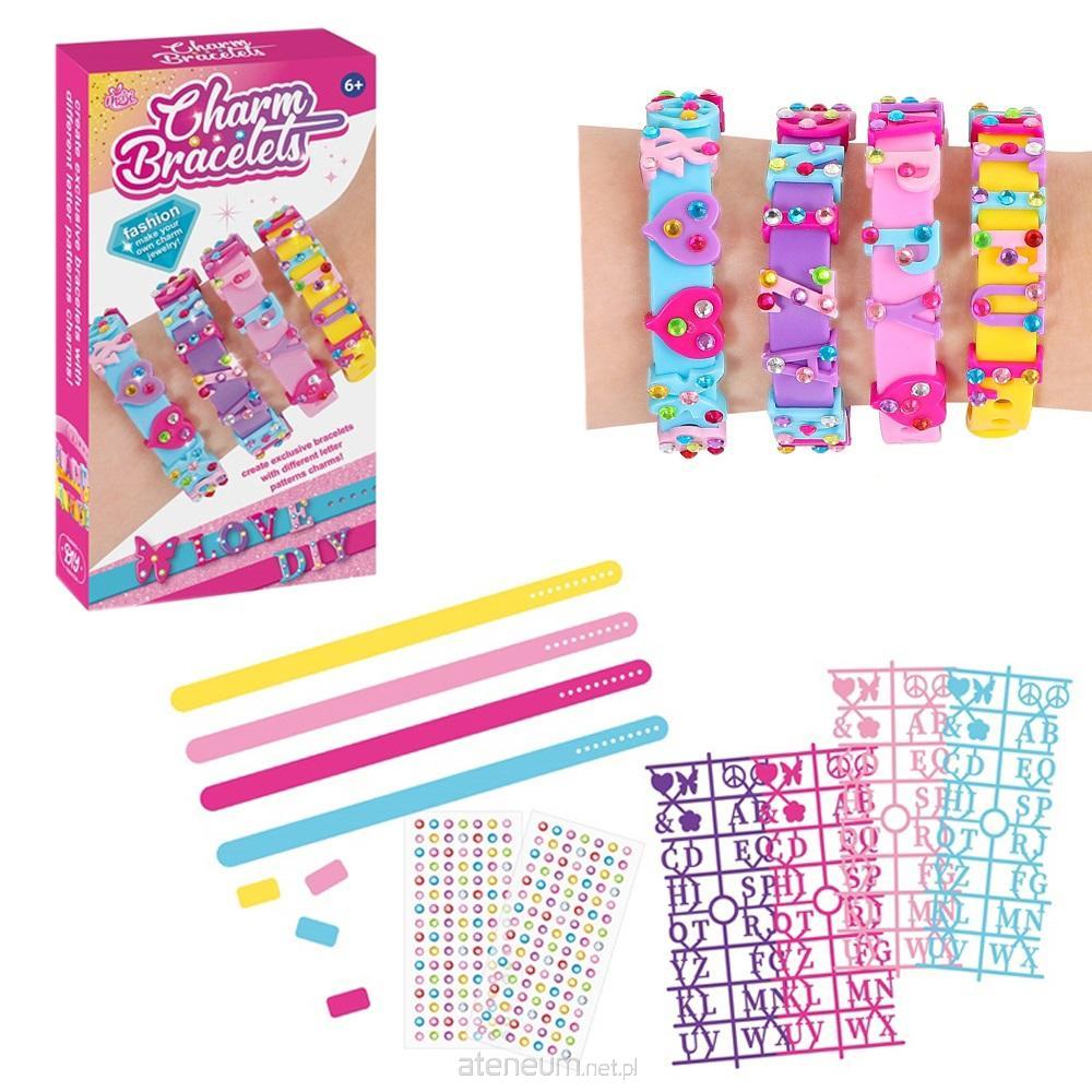 Zestaw bransoletek (w zestawie 4 bransoletki, 2 arkusze dżetów, 4 arkusze literek) Pakowanie: 15 szt./display Wymiary opakowania: 10.7x3.2x20.2 cm