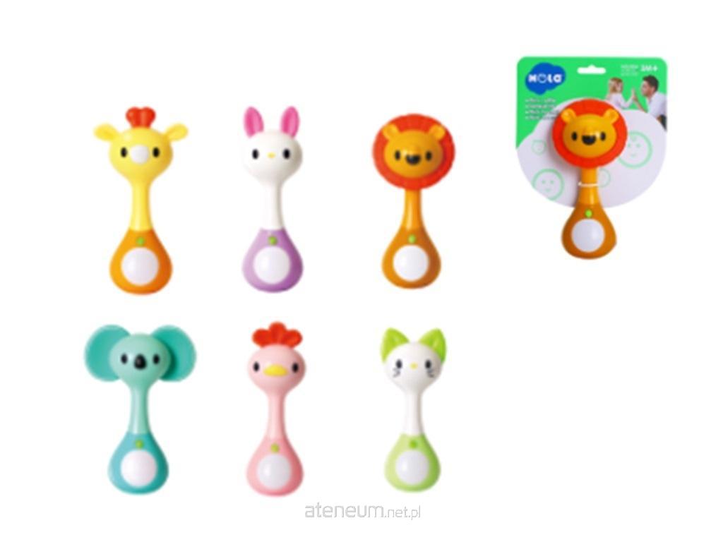 Grzechotka Zwierzątko dla malucha b/o 3m+ Grzechotka zasilana na baterie. Po naciśnięciu przycisku grzechotka uruchamia się i wydaje przyjemne dżwięki. Podczas grania melodii po potrząśnięciu wydobywają się delikatny dźwięk grzechotania. Uszka zwierzątka wykonane zostały z miękkiego silikonu, dlatego doskonale sprawdzą się w roli gryzaka